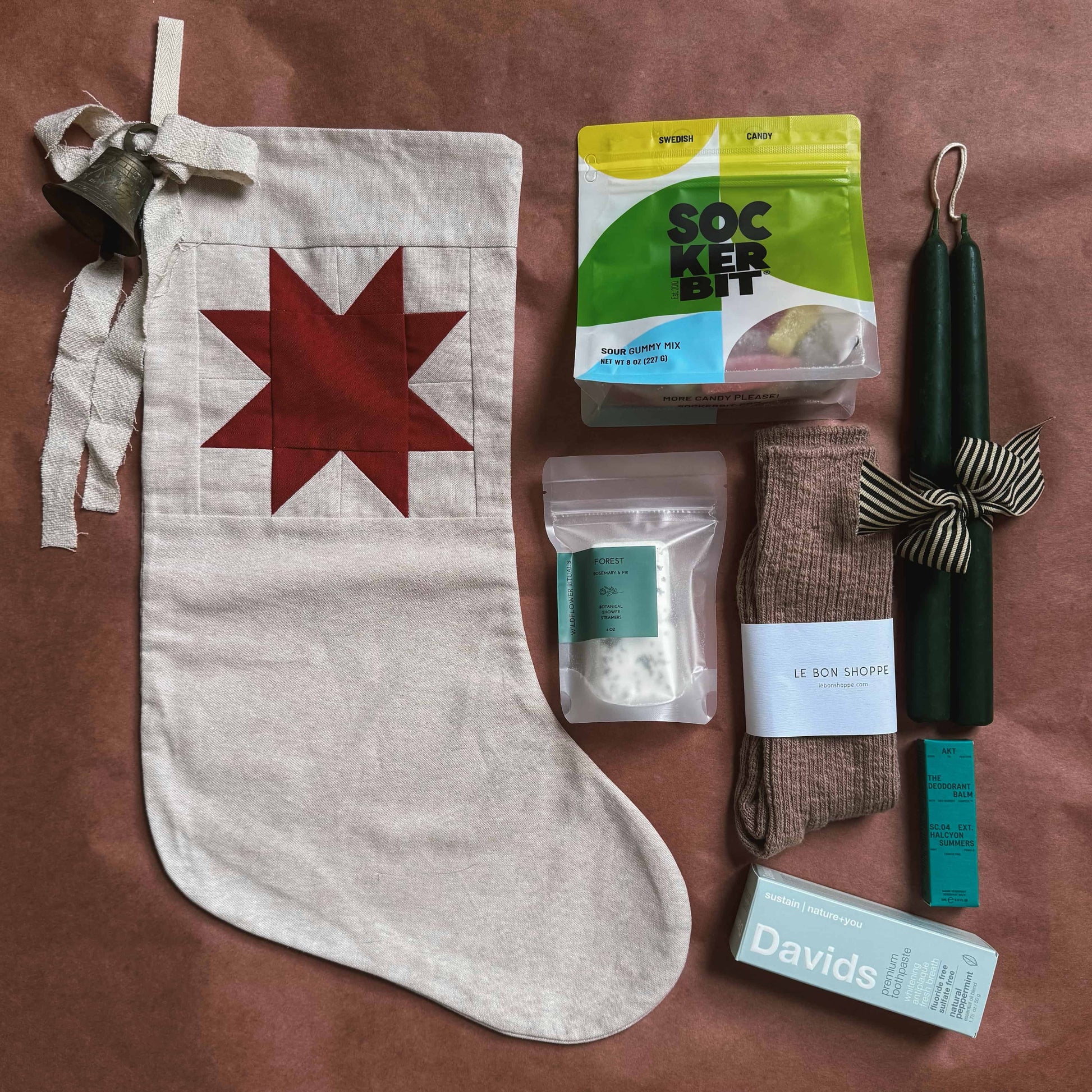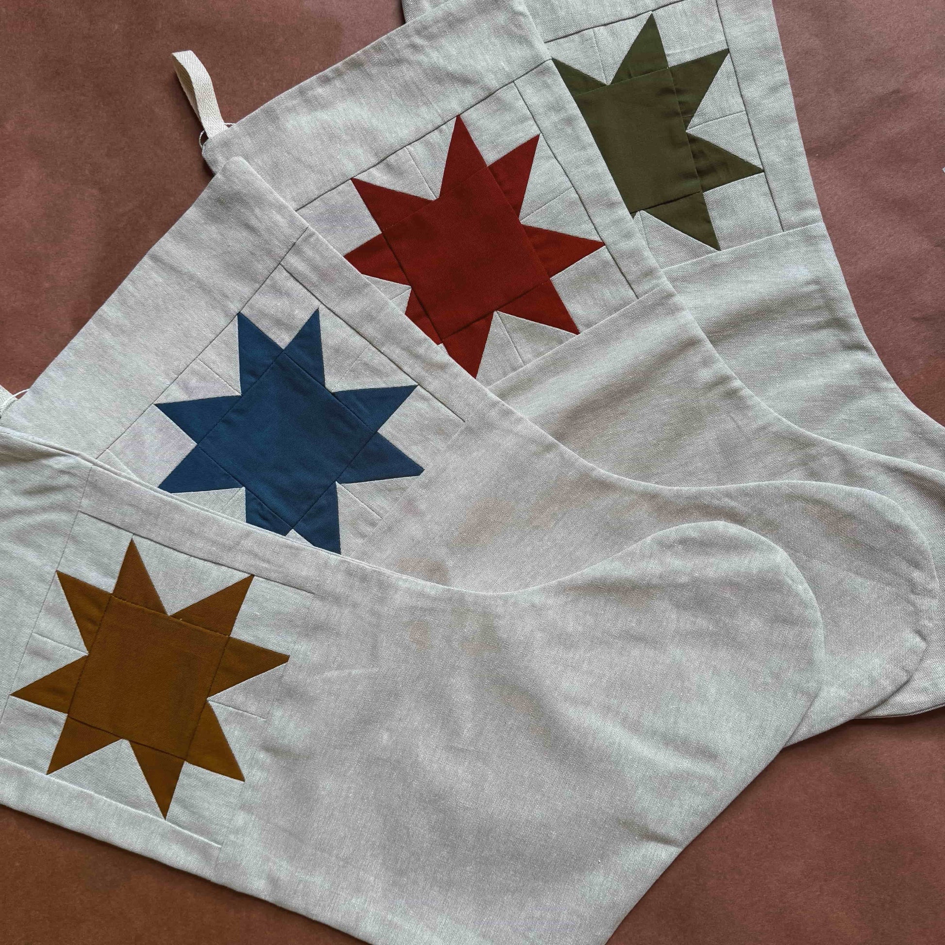 Incorporating a classic quilt block in a modern tonal color palette, these linen and cotton stockings are sure to become a holiday heirloom used year after year. For stuffing with small treasures for both children and adults alike, they are generously sized for holding sweets, practical everyday use items, a new read, and other unique delights. Designed and sewn in a one-woman studio in Seattle, Washington.